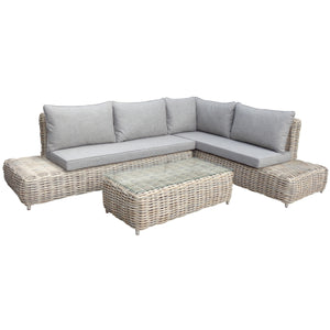 The Amalfi Collection Outdoor Large Corner Set is the epitome of style and comfort, offering a luxurious seating solution for your outdoor spaces. This generously sized set includes a left section, right section, and a sleek coffee table, creating the perfect corner arrangement for entertaining or relaxing with family and friends. With its chunky 12mm HDPE wicker weave and neutral beige tones, this set adds an elegant touch to any patio, garden, or poolside area.