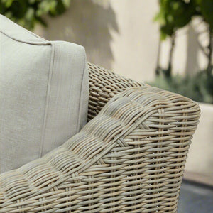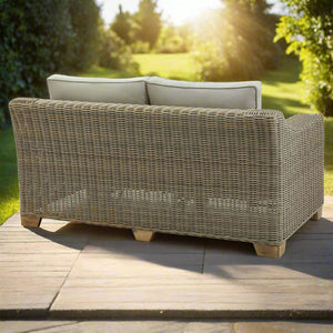 The Capri Collection Outdoor Two Seater Sofa is a perfect blend of sophistication and resilience, designed to elevate your outdoor living space. Crafted with high-quality HDPE wicker and a lightweight yet robust powder-coated aluminium frame, this sofa combines timeless style with modern functionality. Its natural beige tones and sleek design ensure it complements various outdoor settings, from modern patios to rustic garden spaces.
