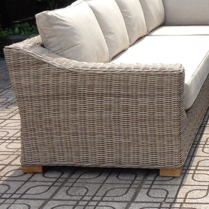 The Capri Outdoor Large Corner Set With Riser Table + 2 Stools is a perfect blend of style and functionality, designed to transform your outdoor space into a luxurious retreat. This elegant set includes a spacious two-seat sofa, a corner unit, a height-adjustable riser table, and two matching stools, making it ideal for both relaxing and entertaining. Crafted with a durable 5mm half-round HDPE wicker weave, this set offers a realistic, hardwearing finish that complements its sleek and contemporary design.