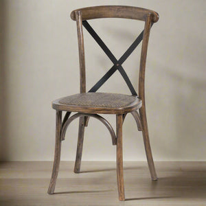 The Cross Back Dining Chair is a versatile and stylish addition to any dining space, blending timeless design with subtle industrial elements. Crafted from durable elm wood, this chair features a distinctive cross-back design that adds both character and comfort. Its black-finished metal accents bring a modern, industrial touch, ensuring it complements a variety of interiors, from rustic farmhouse to contemporary chic.