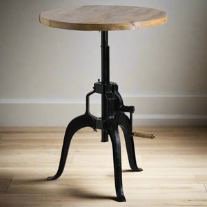 The Draftsman Adjustable Bar Bistro Table embodies industrial aesthetics with its raw materials and vintage-inspired details. The weathered wooden tabletop exudes authenticity and character, providing a warm, inviting surface for casual gatherings. Its circular design creates a sense of inclusivity, making it ideal for both intimate and social settings. Supported by a robust metal framework, this table merges practicality with style, effortlessly enhancing interiors that embrace industrial or urban chic décor.
