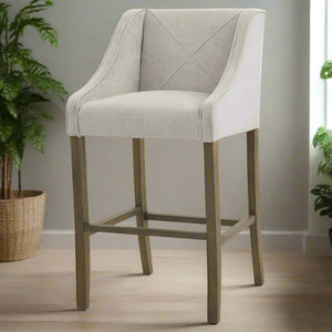 The Epsom Grey Barstool is a stunning blend of timeless elegance and contemporary charm. Upholstered in a light grey woven fabric, this barstool effortlessly complements a variety of interior styles, from modern minimalism to classic sophistication. The neutral tone of the fabric makes it a versatile choice, while the piped detailing adds a touch of luxury, elevating its overall aesthetic. Perfectly suited for kitchens, breakfast bars, or home bars, the Epsom Grey Barstool is as stylish as it is practical.
