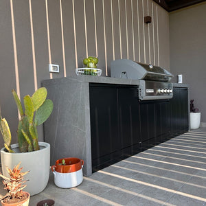 The Grand Pro 215cm Series Crossray 4 Burner Modular Outdoor Kitchen brings the perfect balance of style, functionality, and high-performance cooking to your outdoor space. Designed for smaller patios and terraces, this modular outdoor kitchen provides everything you need to grill, prep, and serve without compromising on space. Featuring the Crossray 4 Burner Built-In Gas BBQ, a double-door BBQ cabinet, and two single-door side cabinets, this compact yet spacious kitchen delivers a premium grilling experience at an affordable price.