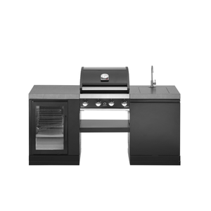 The Grand Pro 185cm Series Premium G4 is a high-end modular outdoor kitchen designed for those who want to elevate their grilling experience. At the heart of this setup is the Grandhall Premium G4 Built-In Grill, a powerful four-burner gas grill that delivers exceptional heat distribution and precise temperature control. Featuring porcelain-coated cast iron grates, a cast iron hotplate, and a warming rack, this grill allows you to cook everything from sizzling steaks to delicate seafood with professional-level results. The integrated electric ignition system ensures a seamless start every time, while the built-in thermometer lets you monitor temperatures with ease.