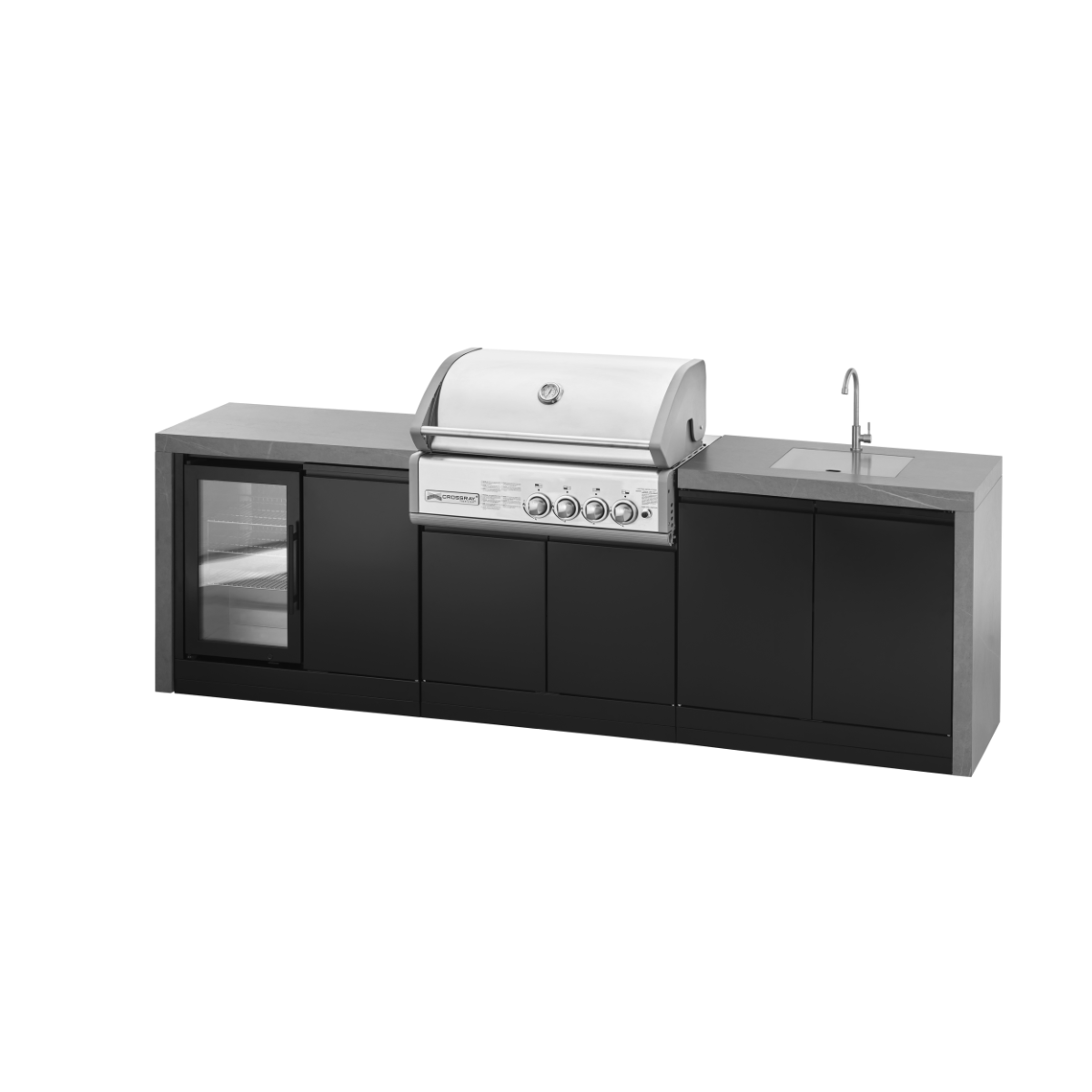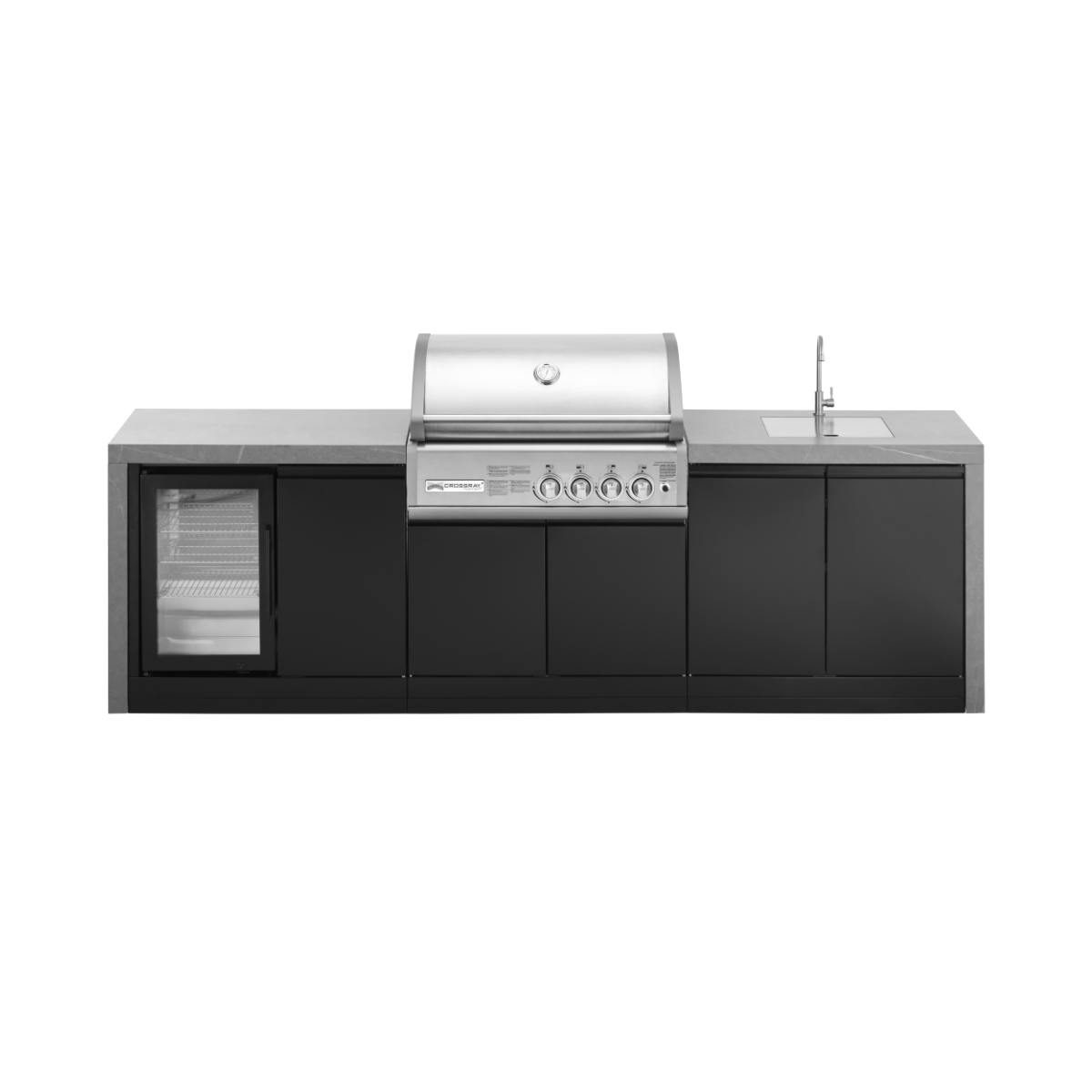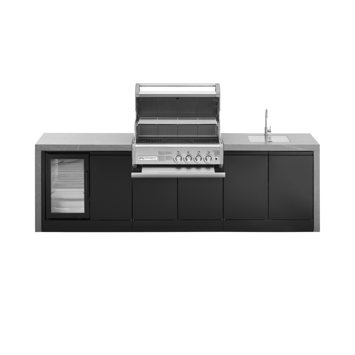 GrandPro 284cm Series Crossray Modular Outdoor Kitchen with Fridge & Sink Waterfall Edition