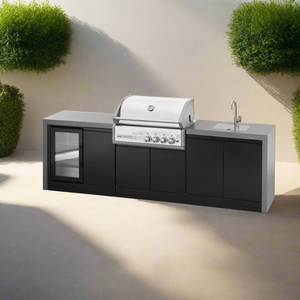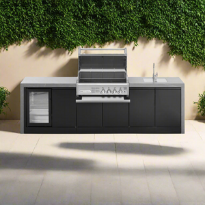 Transform your outdoor space into a fully equipped culinary hub with the GrandPro 284cm Series Crossray Modular Outdoor Kitchen with Fridge & Sink Waterfall Edition. Designed to seamlessly integrate performance, style, and convenience, this luxury outdoor kitchen is built for those who love to entertain. With state-of-the-art infrared grilling technology, a built-in fridge, and a fully functional sink, this kitchen delivers professional-level performance in an elegant and modern design. Whether you're hosting a garden party or preparing an intimate family meal, this all-in-one unit ensures that everything you need is within arm’s reach.