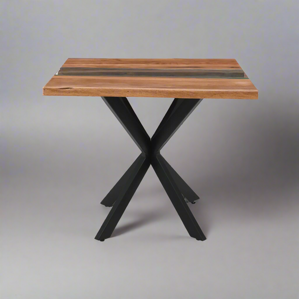 The Live Edge Collection Square River Dining Table is a breath-taking blend of natural beauty and contemporary design. Handcrafted from solid Acacia wood, this table features a striking glass 'river' running through its centre, showcasing the organic charm of raw wood while adding a captivating visual element. Its live edge detailing highlights the unique grain and natural contours of the wood, making every table a one-of-a-kind work of art.