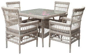 The Provence Collection 4 Seater Outdoor Dining Set combines elegance and functionality, making it a stunning addition to any garden, patio, or outdoor dining space. Designed with longevity in mind, this set features a high-quality HDPE rattan weave, providing a sophisticated look that is both hardwearing and weatherproof. Its neutral beige tones make it versatile, complementing a variety of outdoor decor styles, from modern minimalism to rustic charm. The tempered glass tabletop adds a polished finish, offering a sturdy surface that resists scratches and is easy to clean.