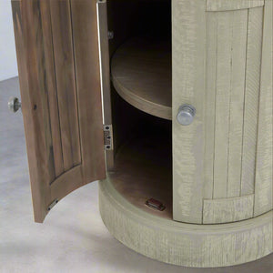 The Saltaire Collection Round 2 Door Cupboard offers a unique blend of modern aesthetics and timeless appeal. Its circular design introduces smooth outlines and organic shapes that add softness and sophistication to any space. The treated wood stain enhances its weathered appearance, bringing a sense of warmth and familiarity while maintaining its sleek, pared-back style. This versatile piece is ideal for modern and classic interiors alike.