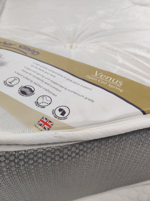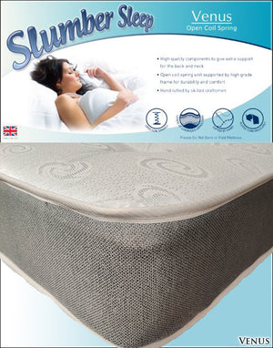 The Venus Range mattress by Slumber Sleep is crafted with premium open coil springs, delivering exceptional support and comfort tailored for all sleepers. Designed to offer enhanced neck and back support, the Venus mattress provides a restful sleep experience with its durable construction and premium-grade frame.