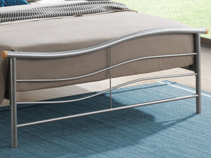 The Venice bed frame combines a modern aesthetic with subtle elegance, creating a stylish centrepiece for any bedroom. Crafted by Time Living, this bed is available in single and double sizes and finished in a sleek silver tone. With its unique waved headboard and footboard, complemented by stylish wooden end caps, The Venice is a versatile choice for those seeking a contemporary bed with a touch of sophistication.